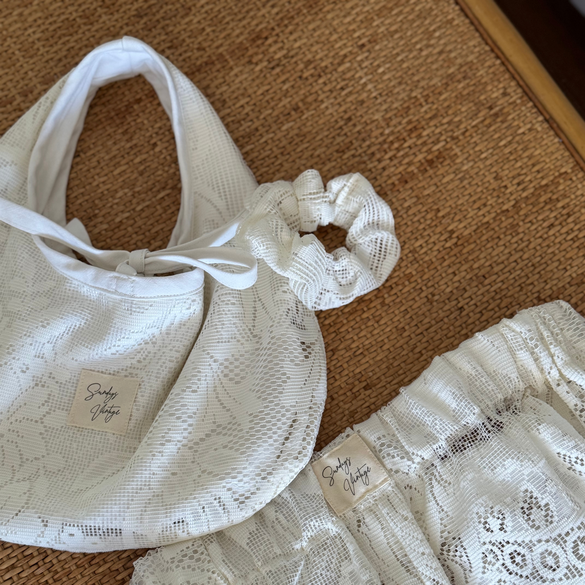 Designed to be worn gently, tied loosely, and loved as a small everyday detail — or kept as a matching piece alongside your lace shorts or bags.