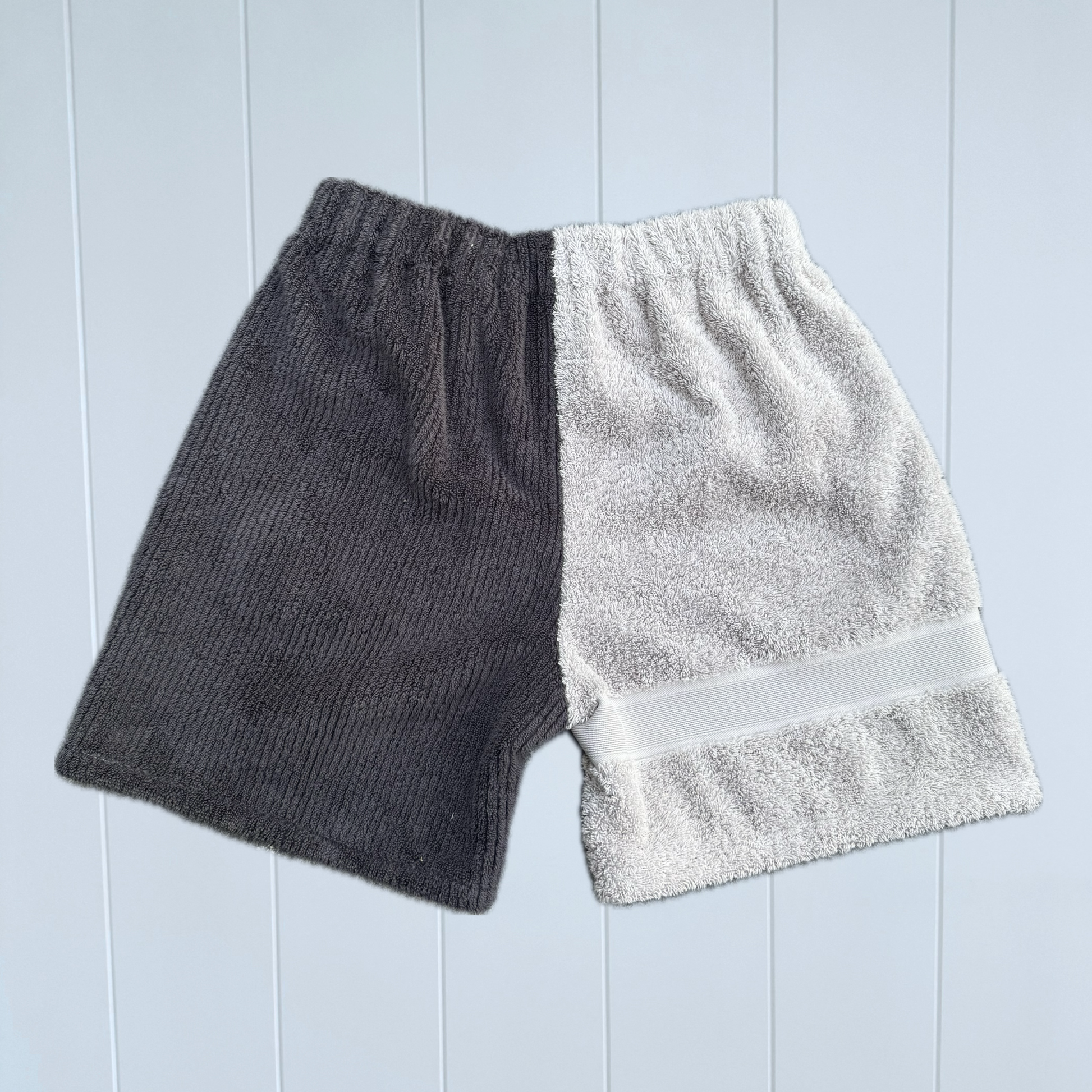 Each pair is thoughtfully cut and sewn by hand in my Melbourne home studio, using carefully selected vintage and preloved towelling chosen for its softness, durability, and lived-in feel. From sourcing to stitching, every towel is used as fully as possible — with leftover scraps transformed into matching bags, hats, and accessories to minimise waste.