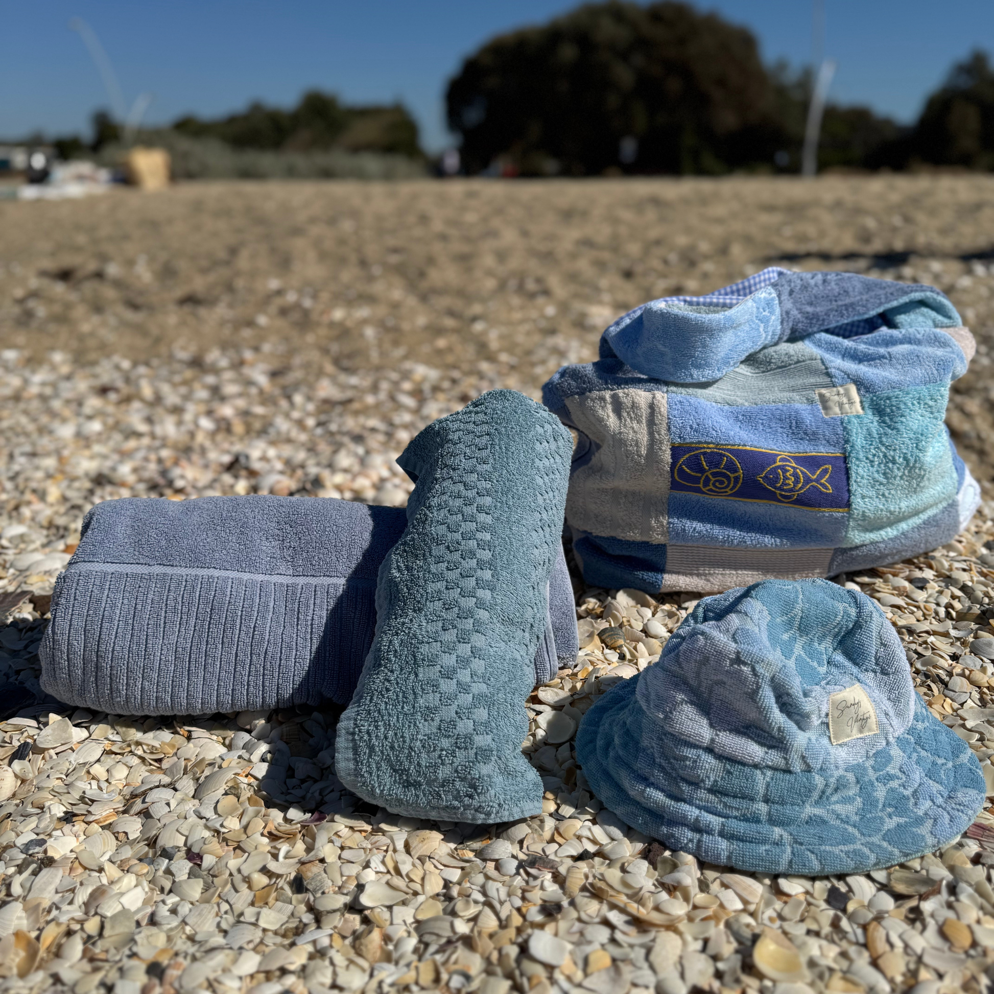 Each hat is thoughtfully cut and sewn by hand in my Melbourne home studio, using carefully selected vintage and preloved towelling chosen for its softness, durability, and lived-in feel. From sourcing to stitching, every towel is used as fully as possible — with leftover scraps transformed into matching bags, hats, and accessories to minimise waste.