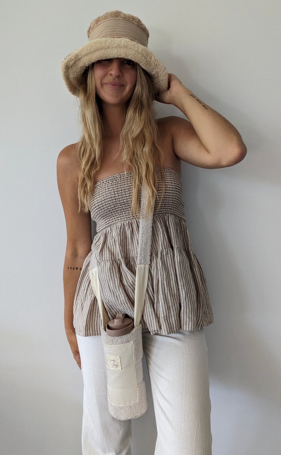 Sundays water bottle holders are all made from preloved/ leftover materials including towels, sheets and scrap fabrics.