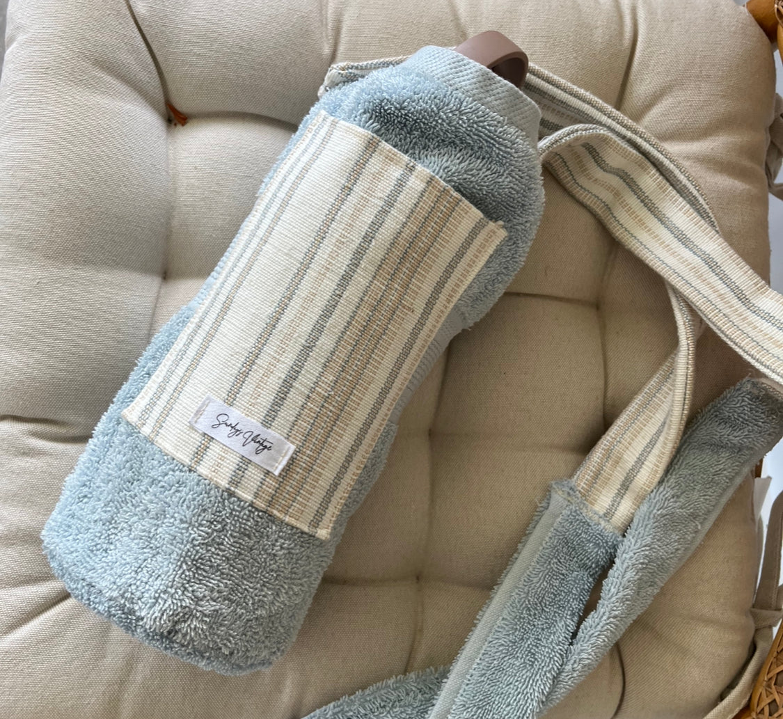 Sundays water bottle holders are all made from preloved/ leftover materials including towels, sheets and scrap fabrics.