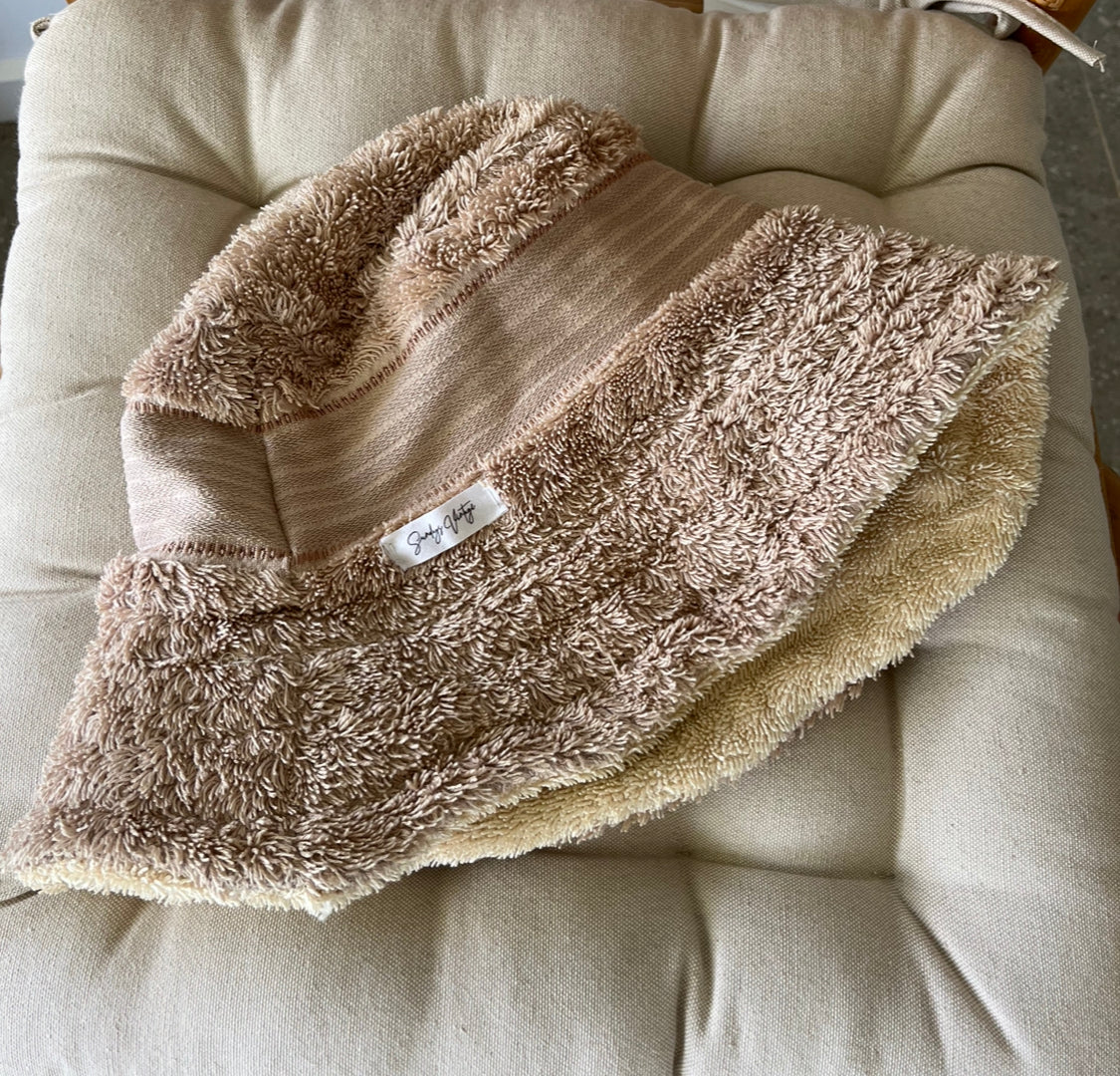 Sundays Reworked bucket hats are all made from preloved/vintage towels. Keeping the old in rotation and creating something new