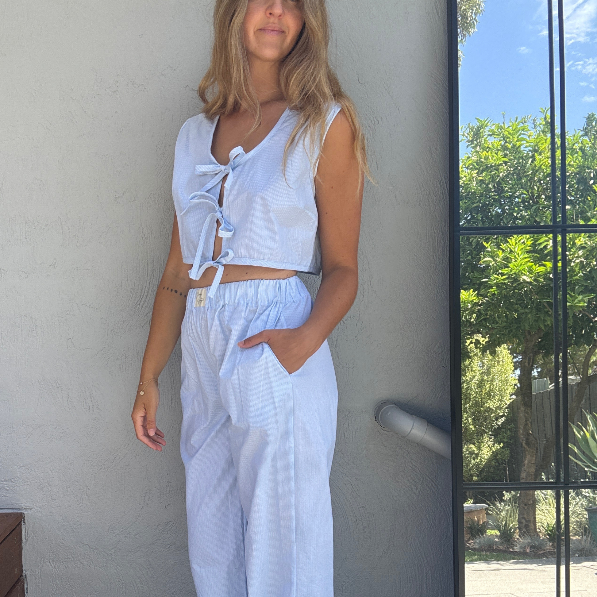 Sundays Set - Elasticated Waist Pants with side pockets and Tie Vest Top