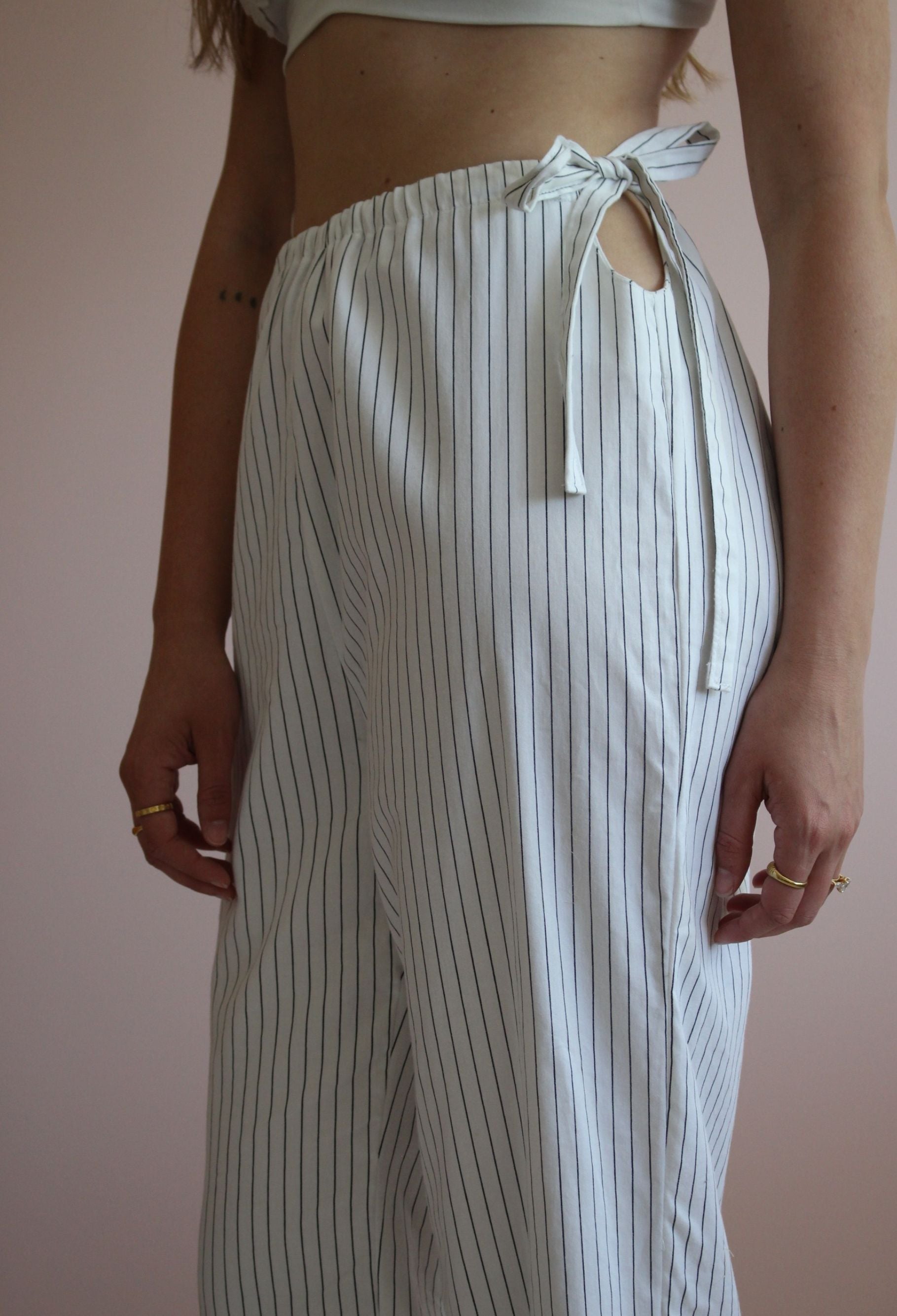 Our Sunnie Pants feature keyhole open sides and are adjustable with the waist ties allowing you to pull them in as much as you need. Complete the look with two charming bows on the sides.