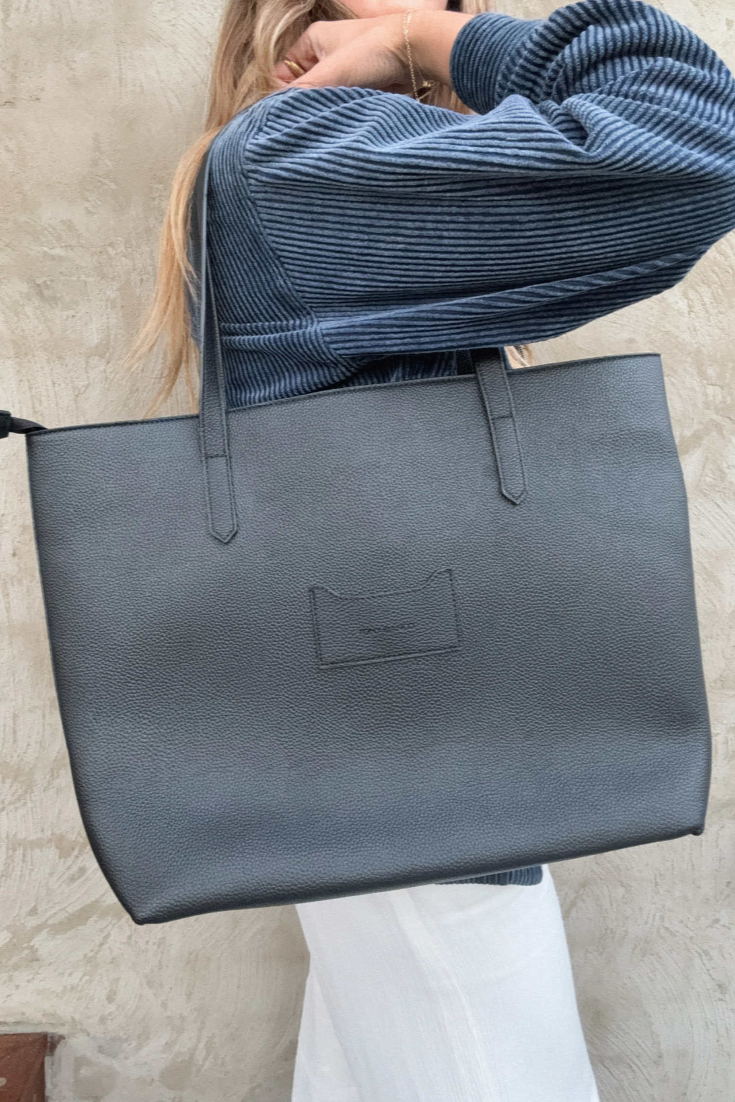Details: This sleek and versatile Tony Bianco large tote bag is a timeless accessory designed to complement any modern wardrobe. Crafted from premium PU leather, the bag offers a sophisticated matte finish with a soft, structured silhouette. Its spacious interior makes it perfect for carrying all your essentials, while the minimalistic design, highlighted by a subtle embossed logo, adds an elegant touch. The sturdy, comfortable straps ensure ease of use, whether you're heading to work or a weekend outing. Ideal for those who value both style and practicality, this tote is a must-have for fashion-forward individuals.