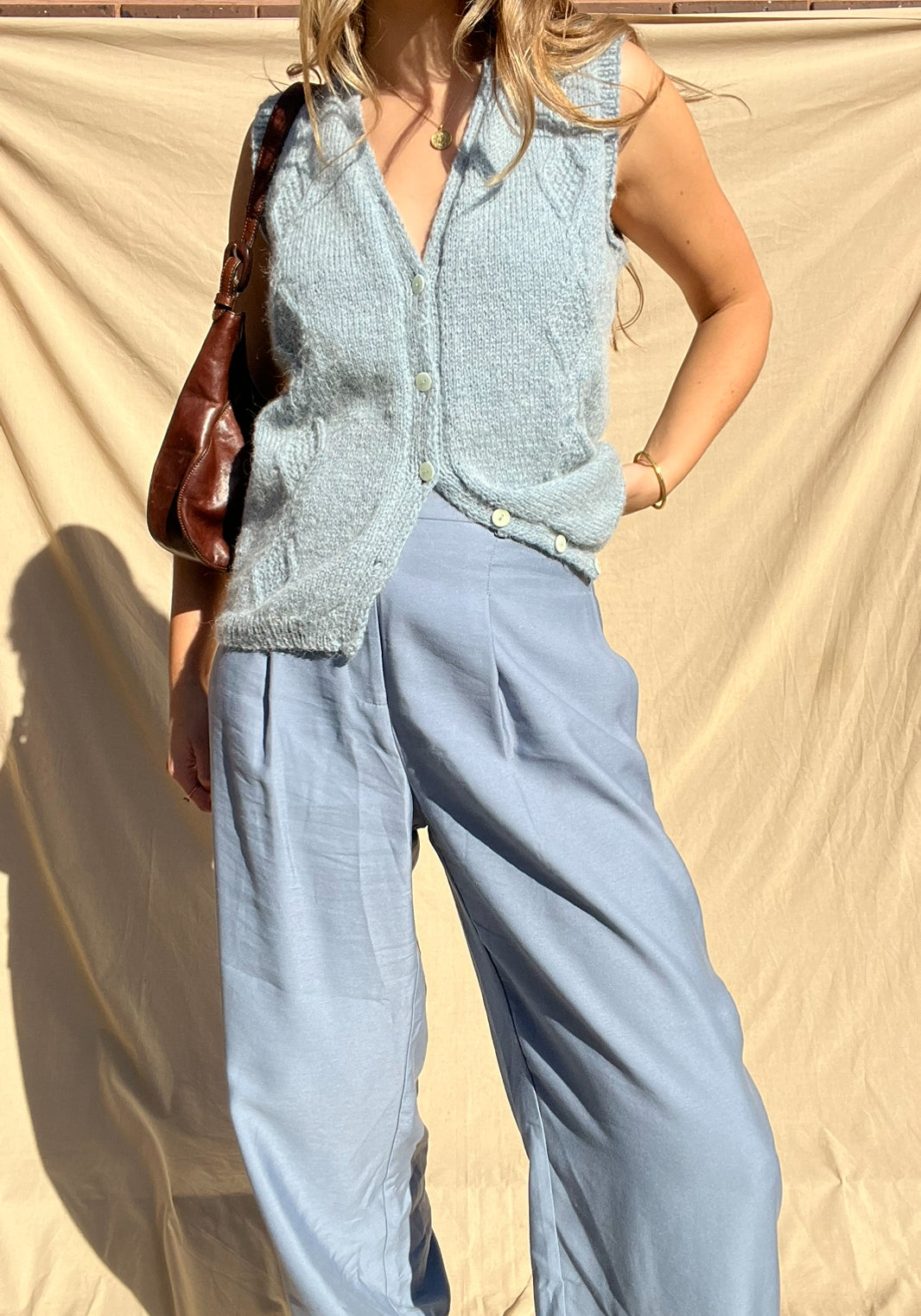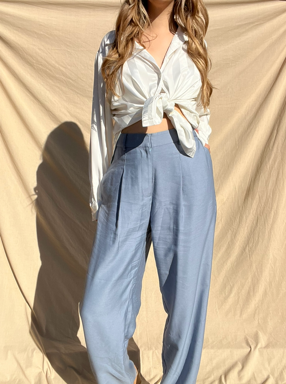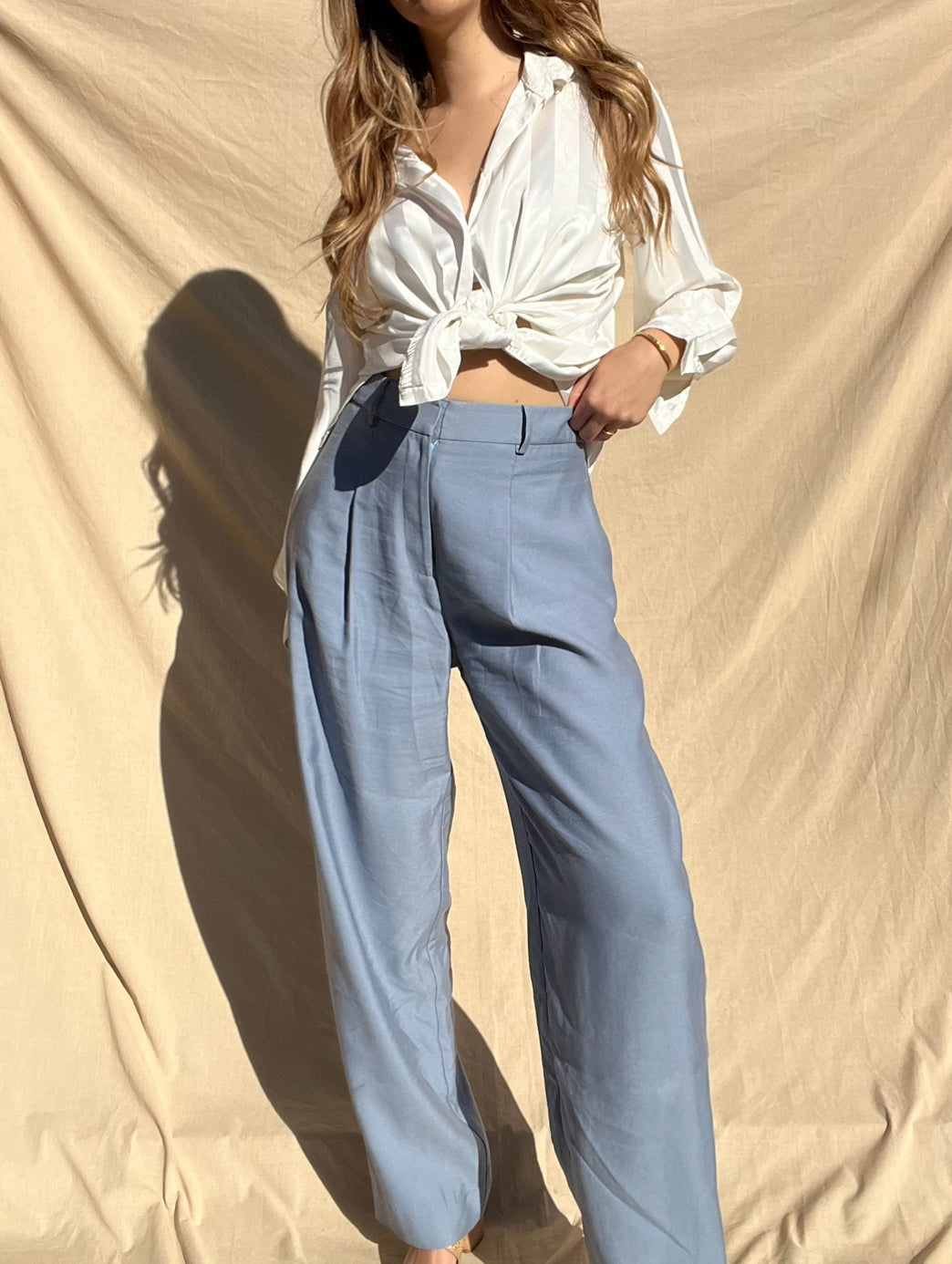 Details:  High waist tailored pants in a beautiful cornflour blue shade. Functional pockets and zip and clasp closure. Sold out style - RRP$249