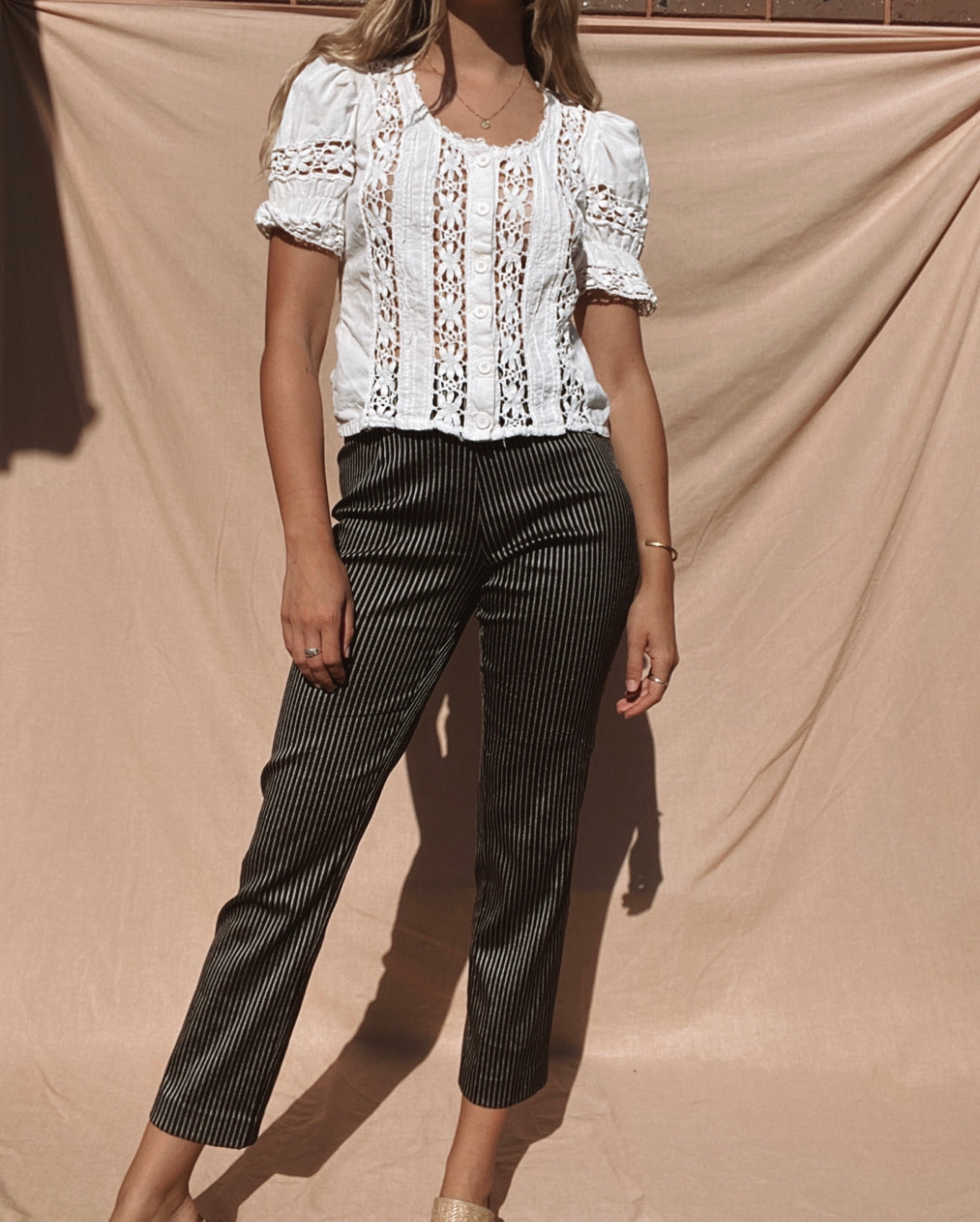 Comfy stretch high waist trousers by Costa. Back zip closure